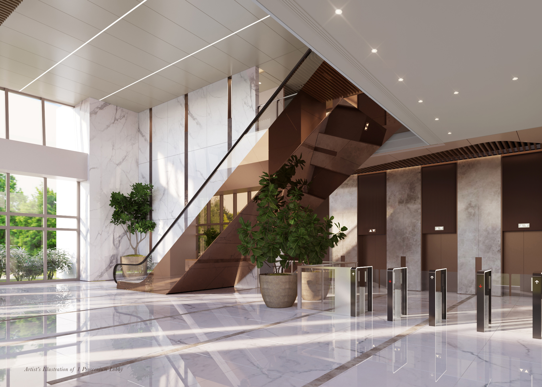 Other sustainable features include the use of energy efficient LED lights and low-consumption water fixtures, as well as floor-to-ceiling windows that offer views of the exclusive community and a steady stream of natural light. Occupiers are assured of uninterrupted and comfortable workflow with 100 percent back-up power, while safety is guaranteed with 1 Proscenium’s RFID card system, 24-hour CCTV monitoring, and security and property management teams that are available 24/7.