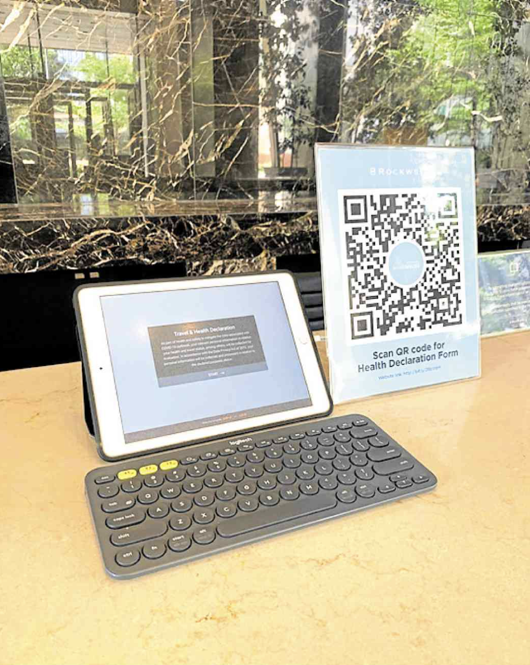 In line with the new health mandates, all employees and guests are required to use face masks and face shields at all times inside the office towers. Upon entry, a device will read their temperatures, detect if they’re wearing face masks and scan their faces for contact tracing purposes. They also need to step on the foot bath for disinfection. Guests are likewise required to accomplish a health declaration form.